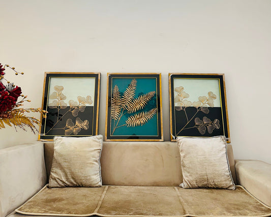 Wall Art Decor: Artificial leaves decor (with glass and frame) Set of 3