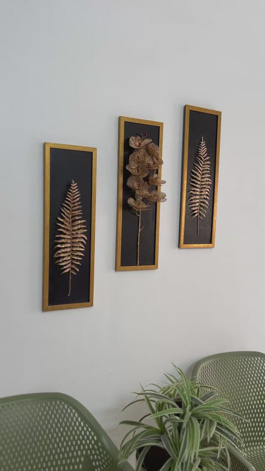 Wall Art Decor: Artificial leaves decor (with glass and frame) Set of 3